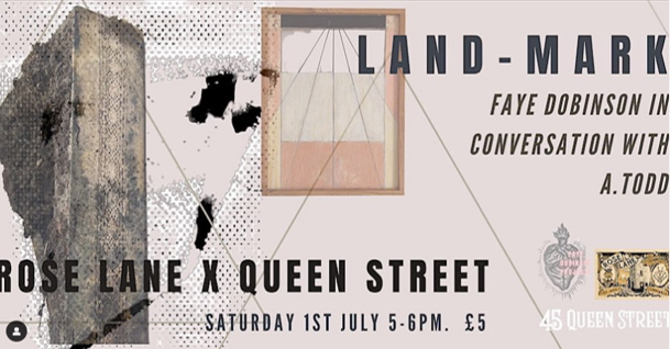 ‘Land-mark’: artist and curator Faye Dobinson will be talking with Krowji artist A.Todd at 45 Queen Street, as part of the Rose Lane Takeover on Saturday 1st July 5-6pm.