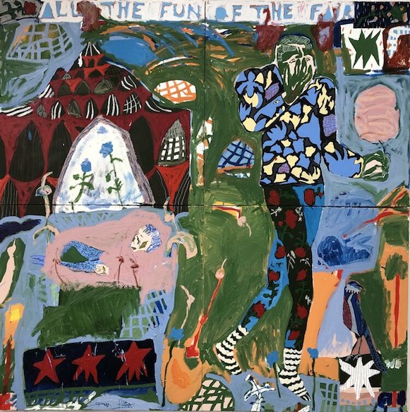 Dan: ‘More than one idea is worked into a painting at a time, different ideas and sketches of the surroundings get stitched into the work like that of a patchwork blanket. Old paintings can be worked on top of for new works, cutting out and bringing the previous painting’s feelings forward into the current (new) painting as a way of building up layers.’