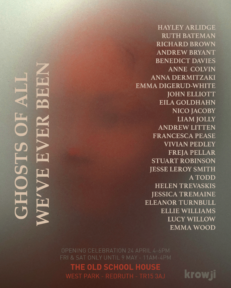 We’re delighted to share the news of this exciting exhibition: Ghosts Of All We’ve Ever Been – Old Schoolhouse Art Show, at Krowji. Opening celebration on 24th April from 4-6pm. Exhibition then open on Fridays and Saturdays only until 9 May, 11am to 4pm.