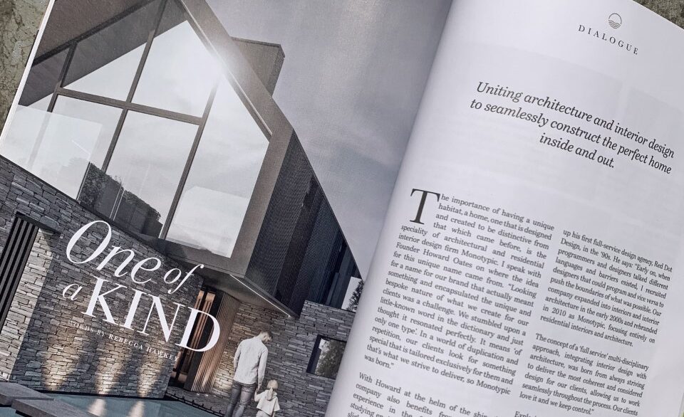 His architecture and interior design business, Monotypic, was featured in the latest edition of the publication. Howard discusses the brand name, business USP and the creative process of designing both the exterior and interior of residential homes with an expert harmony between the two fields.