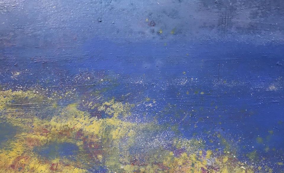 “This illustrative seascape inspired show differs from Jon’s usual abstract style and has been created during COVID 19 lockdown when confined to his garden shed. Drawn back to using pencil and paper on a smaller scale than normal his coastal pieces are a response to the limitation of not being able to walk by the sea which made Jon want to paint it again.”