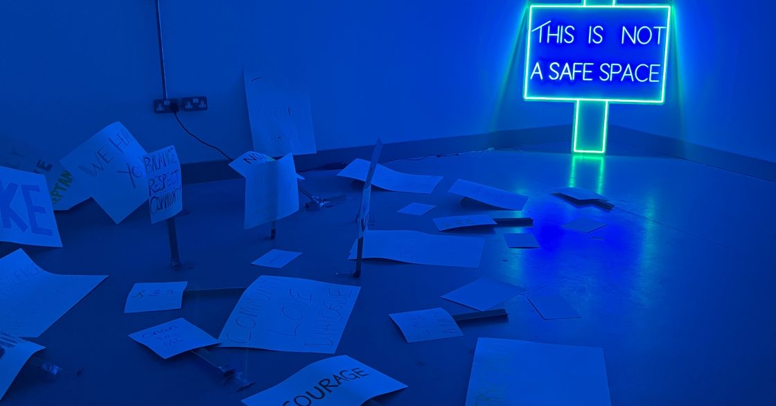 This is Not a Safe Space is a provocation and an active forum, driven by Cornwall’s grassroots and community-based organisation to arrive at a creative manifesto for change for Cornwall. By titling the event in this way we address the question of a safe space at the door- who is this space safe for? This exhibition makes physical this provocation.