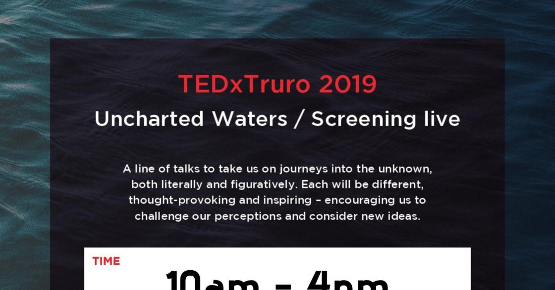 On Friday 25th October we’ll be live streaming the TEDx Truro Talks on the theme ‘Uncharted Waters’.