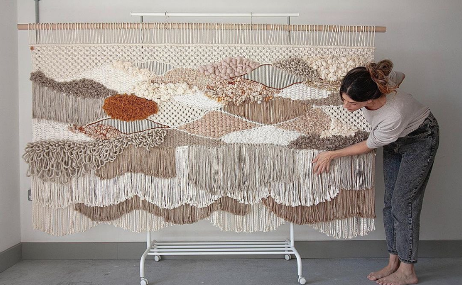 Veronica Fragoso of VEFRAME was commissioned to create a large tapestry for Lewinnick Lodge, Newquay. The tapestry is titled ‘Pentire’ and is the largest piece that the artist has created so far.